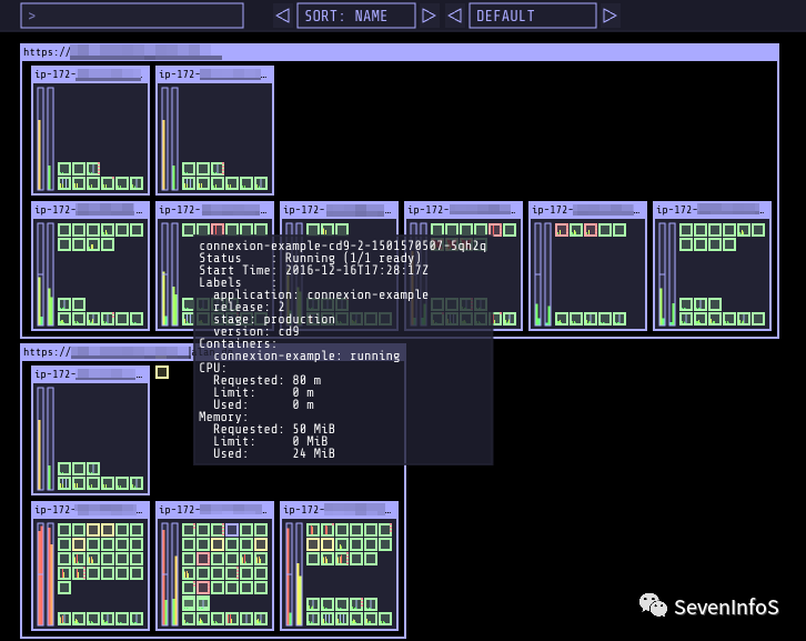 指明pods的状态(绿色:ready/running,红色:error等)。