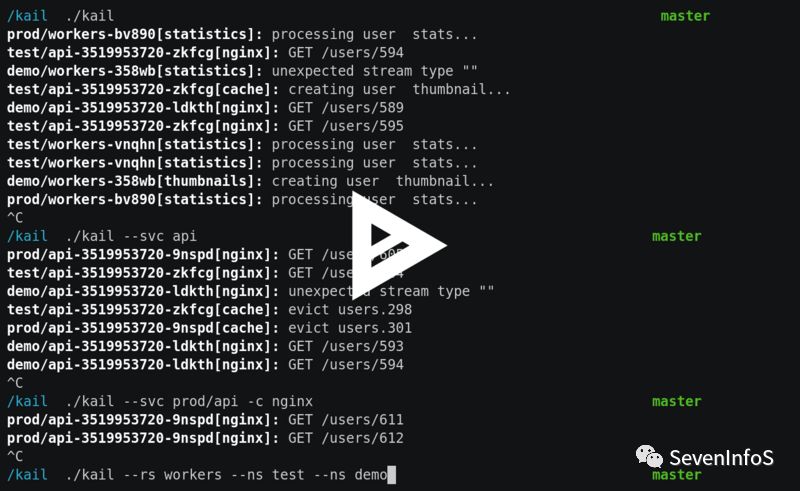 最后,Kail是一个 Kubernetes tail。作为一个Kubernetes日志查看器,kail允许你使用选择器从匹配的pods流式的查看日志。