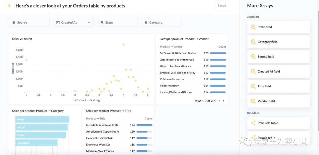 进入之后,可以看到示例数据了。随便点一点,可以看到相关的图表。下面介绍Metabase