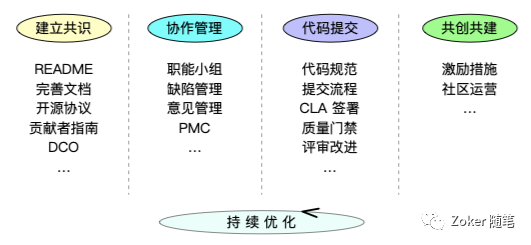 我们也需要在开源项目的运营过程中,重视协作并优化工具,把一些可以自动化的工作尽可能的左移,比如把静态测试下放到开发者在本地提交之前,尽早的发现问题并解决,到了提交 PR 之后才检测,问题已经被放大了,修复和处理的成本也会随着时间越来越高,PR 的门禁检测是最后一道门槛,其目的是为了最终确认而不是检测。甚至我们在资源允许的情况下,可以开放接口,提供远程检测工具链,这样开发者就不必提交一个 Draft PR 来进行这些检测了,直接本地就可以检测并得到结果,或者直接提供一个基于 WebIDE 的调试环境,提前把所有的工作准备好,这样开发者就只需要专注于代码就好。作为平台方,Gitee 也在持续的进行开源项目的生态工具支撑,比如 Gitee 指数、自定义百度统计、PR 评审等等,近期也在进行 PR 门禁、流水线、评审等功能的推进,在开源项目的社区工具支持上不遗余力的支持,欢迎大家使用和反馈。对于开源项目协作相关的流程、工具,你有什么好的实践和建议吗?转载请保留出处:微信公众号「Zoker 随笔」(zokersay)