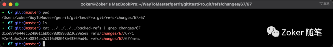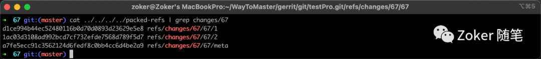 变了,那就会更新对应的 Change 生成一个新的 Patchset,同样存储在refs/changes/67/67