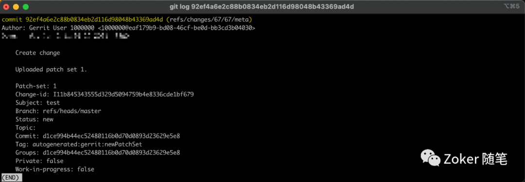 则记录此次 Change 的一些基本信息,里面有一个 Change-id 请记住它,这是 Gerrit 能够跟踪具体commit