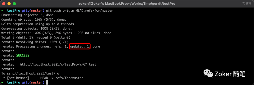 的动作由 Gerrit 接管,并且在处理接受完数据之后(比如创建和更新 Change),就返回给客户端一个分支已经被创建的假象