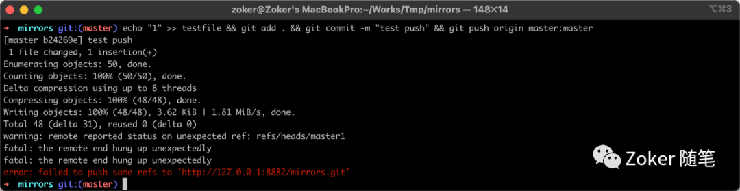 客户端在接收到这个响应的时候就能知道服务端正确的解压了包并且如期的完成了refs/heads/master
