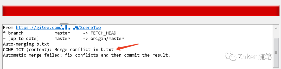 我们在发现有冲突的时候可以尝试合并远端的变更到本地,合并之后即可正常推送到远端,合并的方式也非常简单,就如正常拉取代码一样,执行git pull origin master