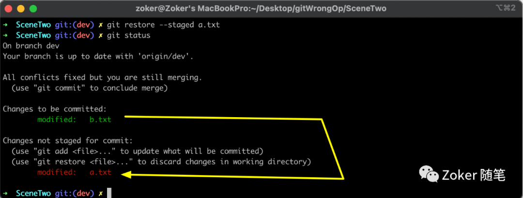移除掉呢?比如恢复到工作区git restore --staged a.txt