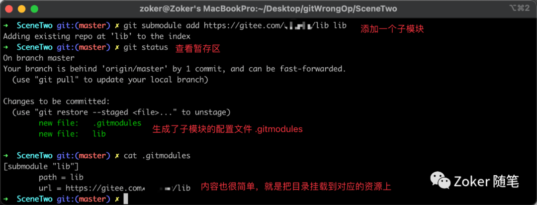 算是一个独立的仓库,它的权限也是独立的,所以说如果有一些目录并不是所有开发都需要,并且是比较核心的库之类的话,试试使用子模块来管理权限也是个不错的选择。