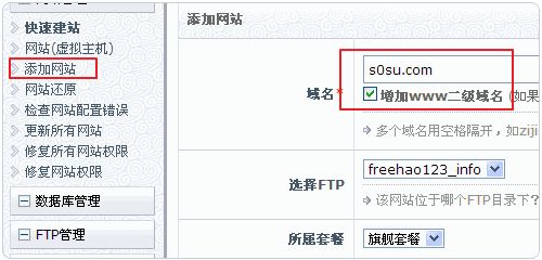 1、登录LuManager后台控制面板,点击“添加网站”输入你想要绑定的域名。