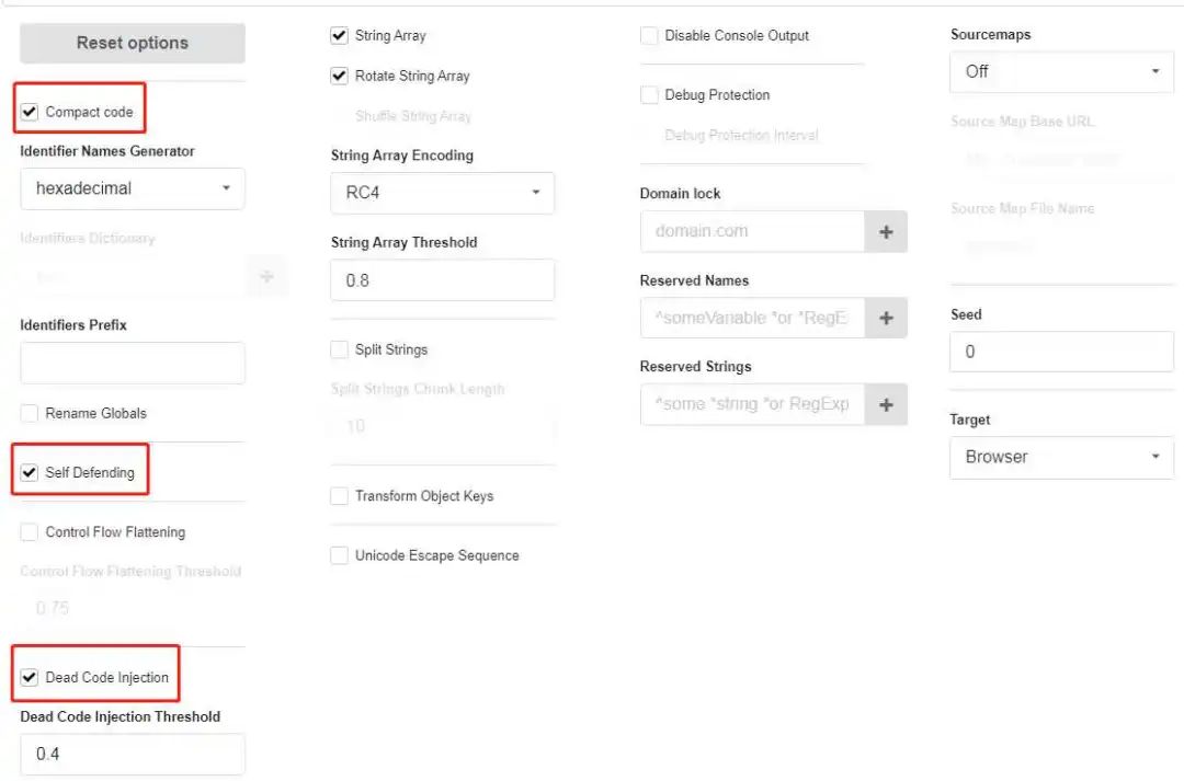 首先,我们打开 https://obfuscator.io/,这是 Obfuscator 的网页版本,可以快速在网页上进行混淆参数的配置,并且一键生成并导出混淆后的代码。