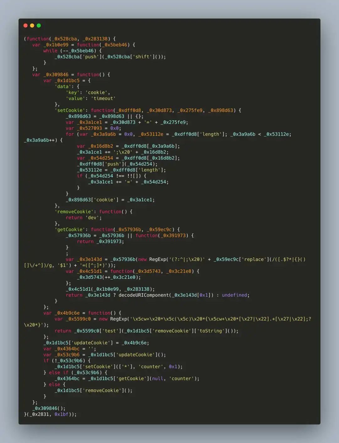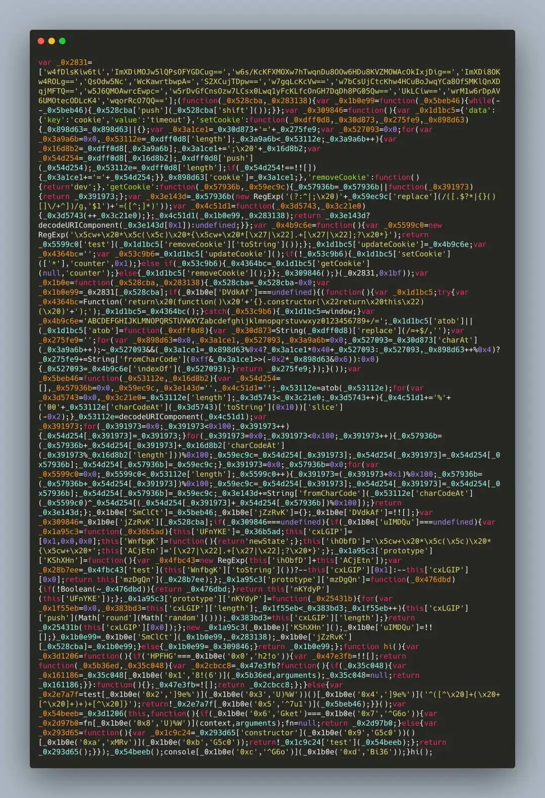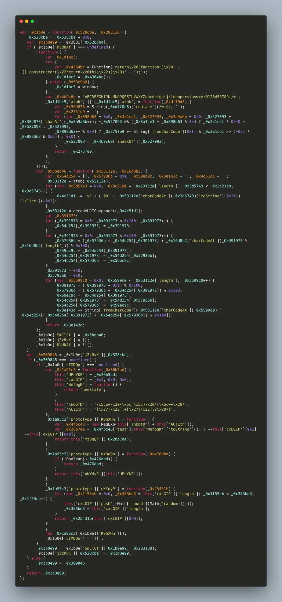 if (_0x1b0e['DVdkAf'] === undefined) {............................_0x1b0e['SmClCt'] = _0x5beb46;_0x1b0e['jZzRvK'] = {};_0x1b0e['DVdkAf'] = !![];}_0x1b0e99 = _0x1b0e['SmClCt'](_0x1b0e99, _0x283138);return _0x1b0e99;