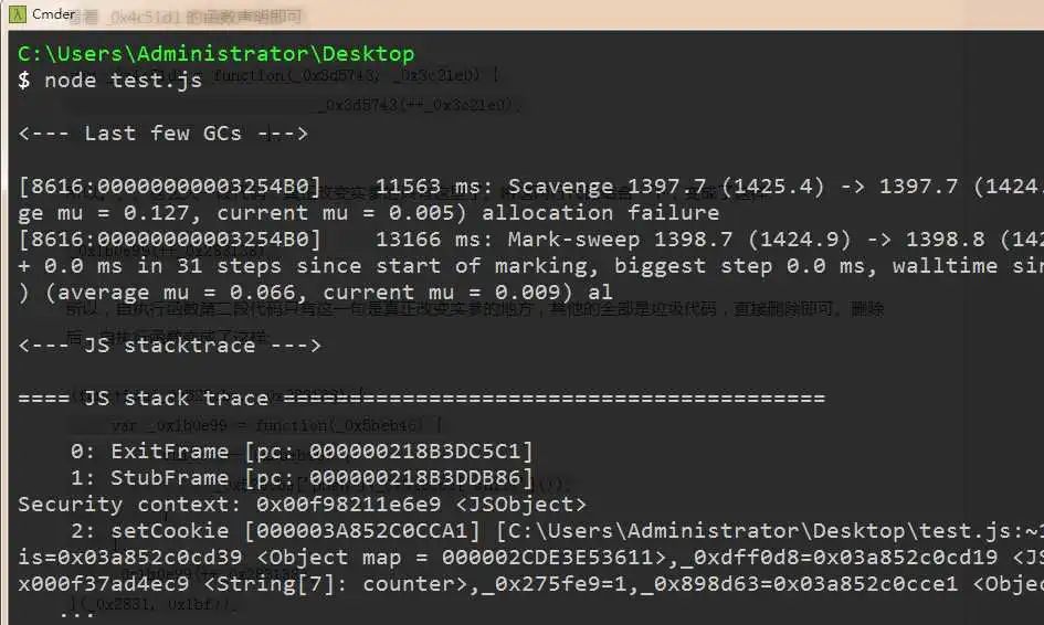 当然,这个代码是可以正常运行的,我们用NodeJS跑一遍看看: