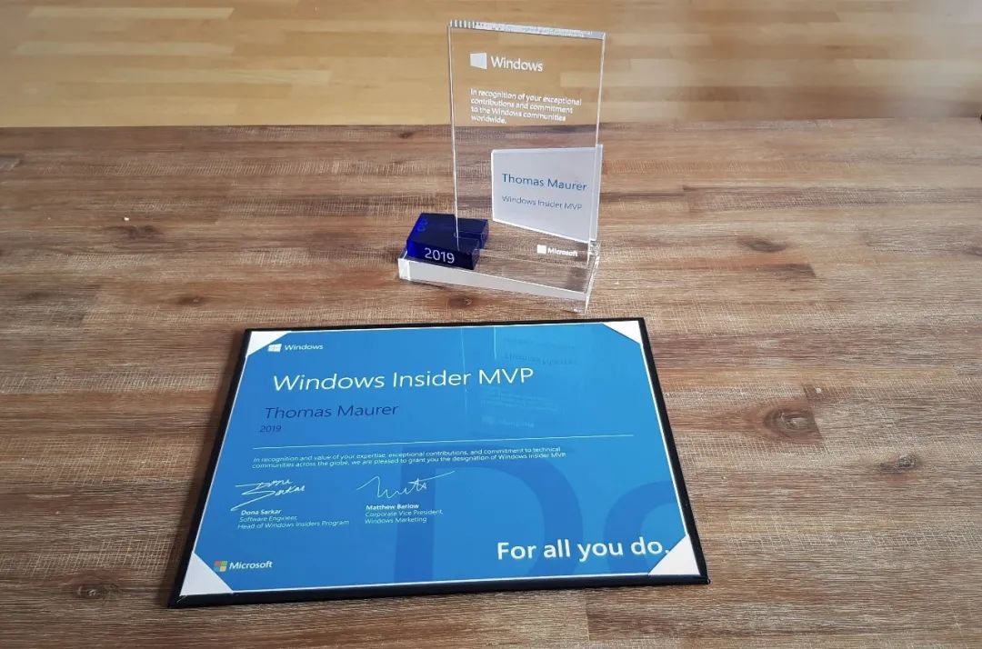(来自 https://www.thomasmaurer.ch/2019/01/windows-insider-mvp-award/)