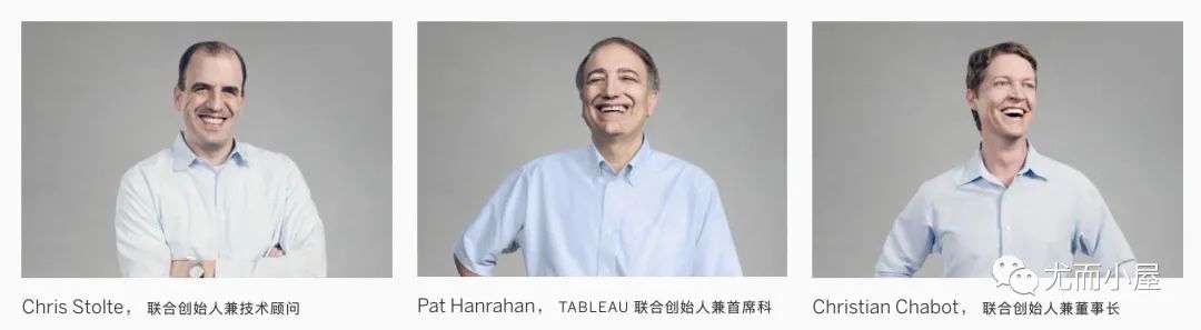 Tableau 成立于 2003 年,是斯坦福大学一个计算机科学项目的成果,该项目旨在改善分析流程并让人们能够通过可视化更轻松地使用数据。下面展示了几位厉害的人物。