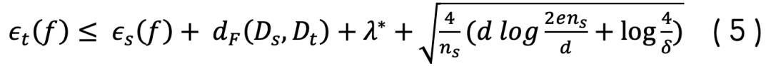 对于任意一个VC维为d的模型f,给定源域上以独立同分布方式采样的大小为ns的样本集,则模型在目标域上的误差ϵt(f),至少有1-δ的概率呈现出[4][5]