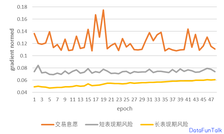 图 5 多任务gradnorm weighting对共享层参数的梯度1-范数对比图