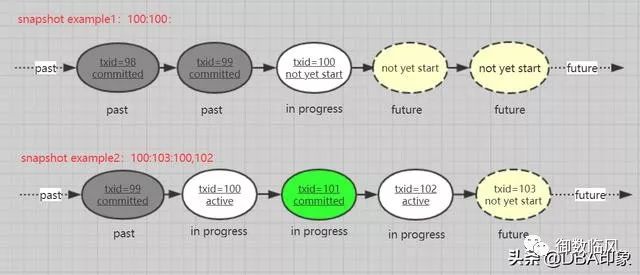 事务快照transaction snapshot,表示某个时刻事务的状态。既然是状态,我在这里对事务快照的理解为三个阶段:一个transaction snapshot将事务划分为过去的、当前的、未来的三个范围区域。