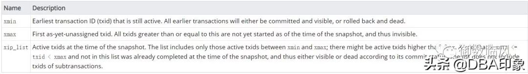 下图是官网对事务快照函数txid_current_snapshot的原文解析: