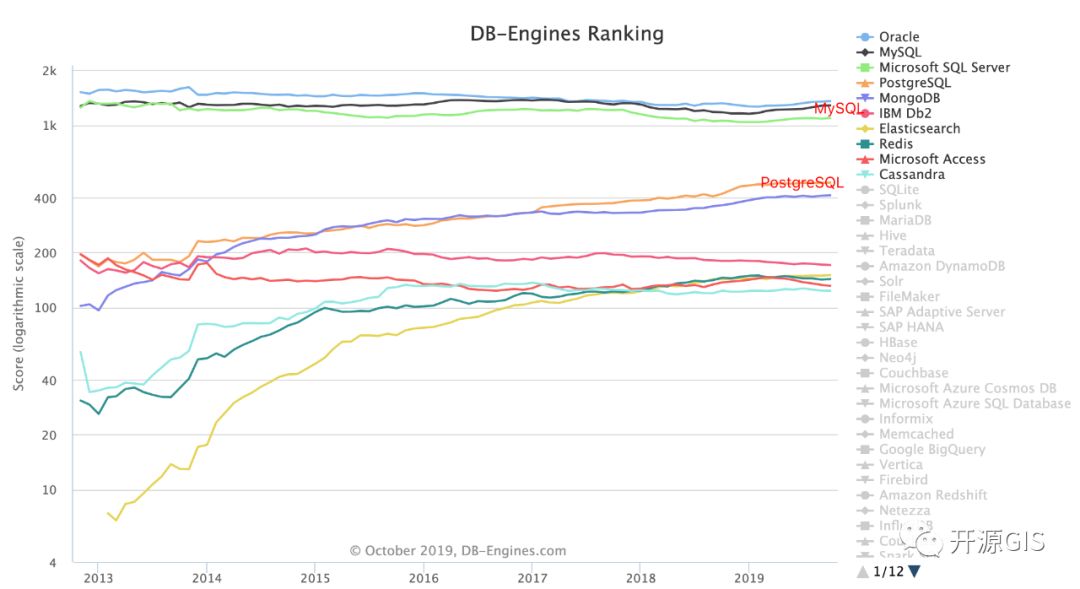 PostgreSQL是一种对象关系型数据库管理系统,支持大部分SQL标准并且提供了许多其他现代特性,为除MySQL外使用最广泛的第二大开源数据库。从db-engines官网提供的排名趋势图上可以看到,PostgreSQL的使用流行度在稳定提升。