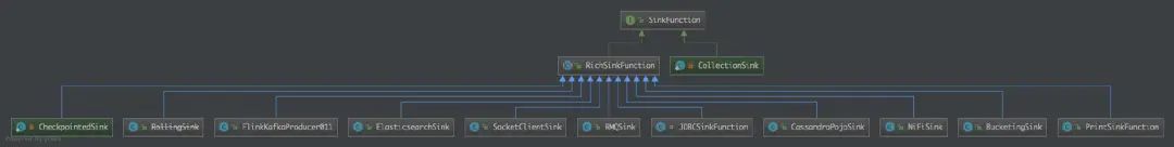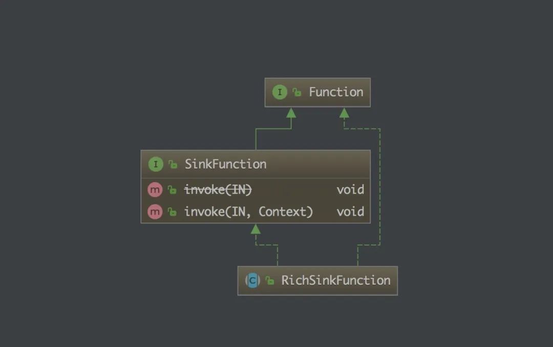 上面的那些自带的 Sink 可以看到都是继承了 RichSinkFunction 抽象类,实现了其中的方法,那么我们要是自己定义自己的 Sink 的话其实也是要按照这个套路来做的。