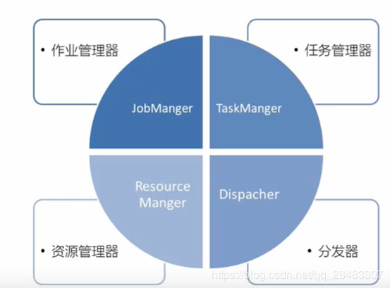 作业管理器(JobManager)、资源管理器(ResourceManager)、任务管理器(TaskManager),