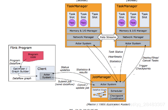 TaskManager 去执行,然后 TaskManager 将心跳和统计信息汇报给 JobManager。