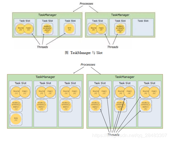 flink中每一个TaskManager都是一个JVM进程,它可能在独立的线程上执行一个或者多个subtask