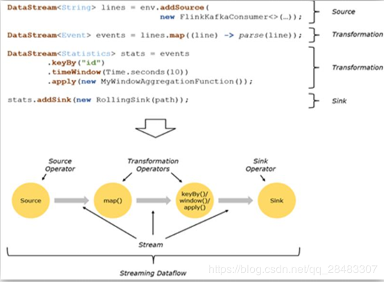 Source 负责读取数据源, Transformation 利用各种算子进行处理加工, Sink 负责输出。