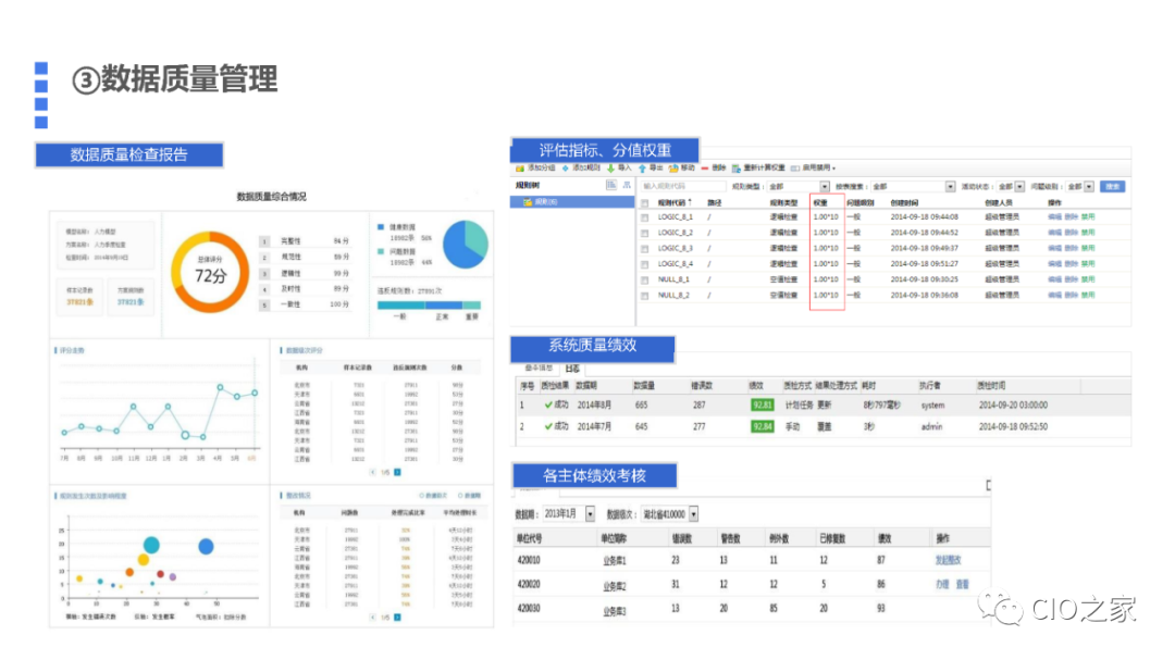 数据中台的数据来源为内部的系统,其数据完整性、时效性、真实性都有待评估和度量,只有在数据中台建立完整的数据质量评估、问题发现、整个的机制与流程,避免数据“垃圾进、垃圾出”,才能不断提升数据中台的数据质量,使数据使用人员逐渐增强对数据中台所到处和展现数据的信任。