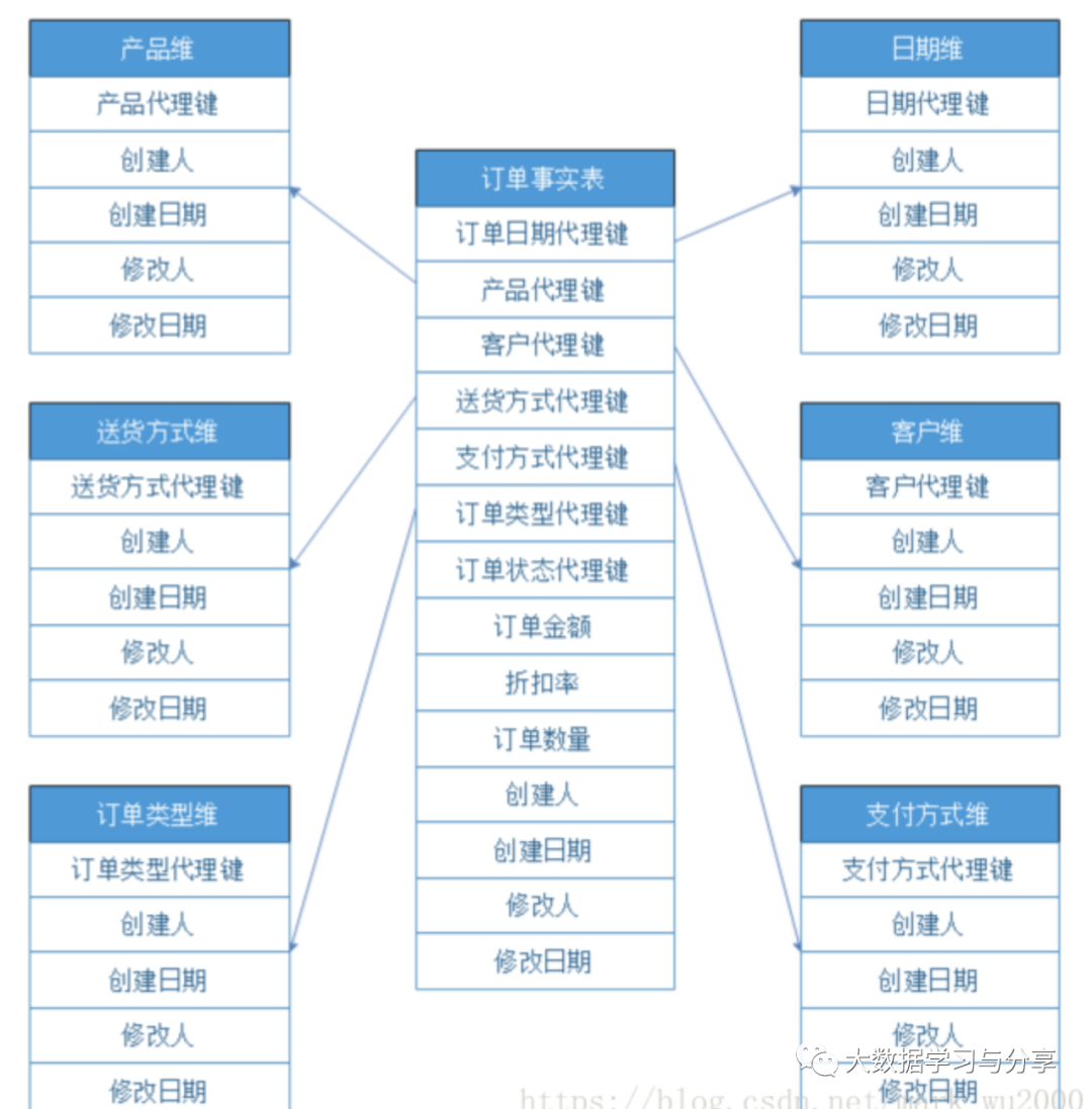 事实表存储了从业务活动或事件提炼出来的性能度量,它主要包含维度表的外键和连续变化的可加性数值或半可加事实。事实表产生于业务过程中而不是业务过程的描述性信息。它一般是行多列少,占了数据仓库的90%的空间。在维度模型中也有表示多对多关系的事实,其他都是维度表。