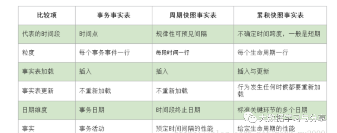 面向事务的,其粒度是每一行对应一个事务,它是最细粒度的事实表。