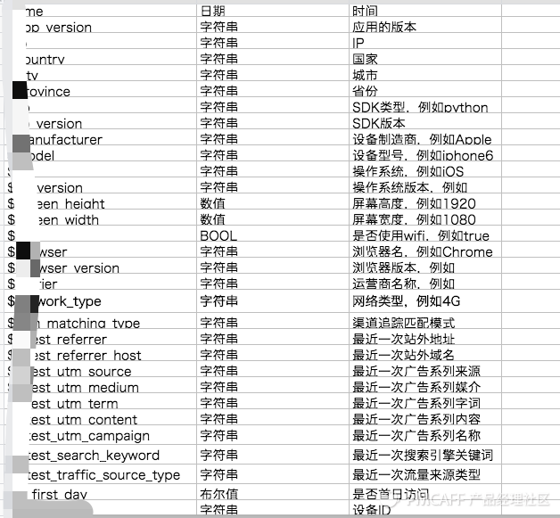 用户表,顾名思义是记录用户信息、用户属性的表,通过用户的唯一标识(user_id)能够将事件表和用户表两张表进行关联。事件与用户实现关联,事件表里一条条的数据记录,就不会再是孤立的统计数字,而是能够与具体的用户产生关联进行分析,或者用行为来圈定用户,给用户设定分群和标签。用户表的自定义维度设计与业务关联度最高,除了常规的用户id、用户昵称、注册时间、首次登陆APP时间等字段外,其他偏业务属性字段需要一个比较全局的视角,不仅要与数据运营方沟通,而是要与公司每一个有分析诉求的部门进行沟通,采集他们的数据分析诉求,来提炼抽象出比较通用的用户表。如上面提到的,如果只是从事件表里把上报的数据聚合成统计数字或者图标,是没有很大意义的,还要能够下钻进行分析。事件表中变量字段的设计是为了从事件反映的用户行为侧进行下钻,而用户表的属性字段则是基于从产生行为的用户本身进行下钻。举简单一例:当日商品详情页的总浏览数据是上升的,但是总GMV确没有明显提高,从事件侧分析,发现某类异业合作主推的单品商详页浏览数据上升,其他品类商详页没有明确上升;从用户侧分析,该类单品新增流量主要来自于渠道A。从此得出的初步判断是:1)单本对渠道A的用户拉新效果明显;2)但是该类用户被吸引来了,却没有下单,很奇怪,需要确认投放落地页与站内商品信息是否一致,尤其是价格;3)该类用户对平台其他商品的兴趣不高。说回用户表的属性字段设计,回到那句核心:采集共性诉求,提炼出通用、容易理解的用户表。这个工作其实并不难,考验的是数据PM沟通、提炼真实诉求,并整合成具体的需求的能力。以我司做内容服务的平台举例,用户属性表如下,基本覆盖了通用的用户群的分析:除了前面提到的自定义事件和用户属性外,一般客户端或者第三方数据采集SDK还会采集一些默认的属性信息,这些可能不需要你单独去定义,但数据PM需要去了解平台获取的默认字段有哪些。在自定义埋点设计中,有一些通用的事件往往是比较复杂的,而且随着业务发展,会变得越来越复杂。比如,APP平台的分享事件,如果按功能模块,每个功能模块都设计了自己的分享事件,则这个事件会越来越分散,且想聚合做复合指标时,如通过分享/日活来衡量内容质量,分享事件要先聚合平台各功能模块的分享事件,太分散会产生应用上的问题。所以,我的建议仍然是将通用类型的埋点统一进行管理,通过变量字段进行拓展,来满足多功能模块的埋点需求。还是以分享事件举例,可以通过多个变量来进行区分。对于通用埋点,有更新时(上新功能,或者下旧功能),就将对应type字段的埋点和值进行更新即可。(另:写上指标变更记录)数据能力推广的第一个难点,是让平台上有哪些数据让大家知道。一个是在各平台埋设的指标,我曾经采用的是excel的方式进行管理,问题是指标一多起来,找起来不太方便,对于定义者(我)来说自然很容易找到,但是对于使用者来说则不太友好。即使搜中文名称,也会存在同一个地方,大家用不同的关键词去搜索,比如:模块、版块、板块。因此在数据指标表的第一个sheet,设计了一个数据指标地图,将不同功能模块的数据指标进行了拆解和说明,运营同事找数据指标之前,先打开指标地图大概定位,然后再去对应的sheet表中寻找对应指标的细节定义和可下钻的维度信息。另一块就是数据仓库的各种表的定义。从数仓里自助取数时,会有以下的问题:有哪些表、表格对应的是哪块业务的数据、有哪些字段,字段的含义是什么?这个需要和大数据组一起来明确具体内容了,这个工作并不复杂,就是需要开个小会进行确认,并且约定好,新增表格时,及时更新对表格的解释。随着版本迭代有新功能的埋点,或者针对之前功能的优化,所以需要对之前埋点进行调整。从埋点管理的角度,新增/修改的埋点,需要整合到之前的埋点系统里,这样能够方便使用者查阅整体的埋点明细。下面是我基于使用Excel来管理APP版本迭代中埋点更新时的解决方案,我并不认为是最优解,所以仅做参考。背景:APP迭代周期为两周一个版本,有3位功能产品经理,他们负责具体功能的设计和产品跟进,在设计产品功能时,也会提交与功能相关的埋点需求,在经过功能评审后,会和我就功能埋点进行一次沟通,然后将确定的埋点需求梳理出来。处理流程:功能在经过需求评审(=技术评审)后,基本确定了这一次要做的功能点,因此也可以梳理出要做的埋点有哪些。所以从这个节点的处理流程是:1)功能产品经理(后称功能PM)梳理相应的埋点清单(按照符合总表设计逻辑的字段进行梳理);