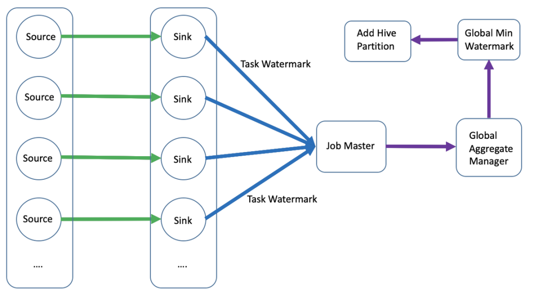 Hive分区生成的难点在于如何确定分区的数据是否就绪以及如何添加分区。由于Sink端是并发写入,同时会有多个Task写同一个分区数据,因此只有当所有Task分区数据写入完成,才能认为分区数据是就绪,本文解决思路如下: