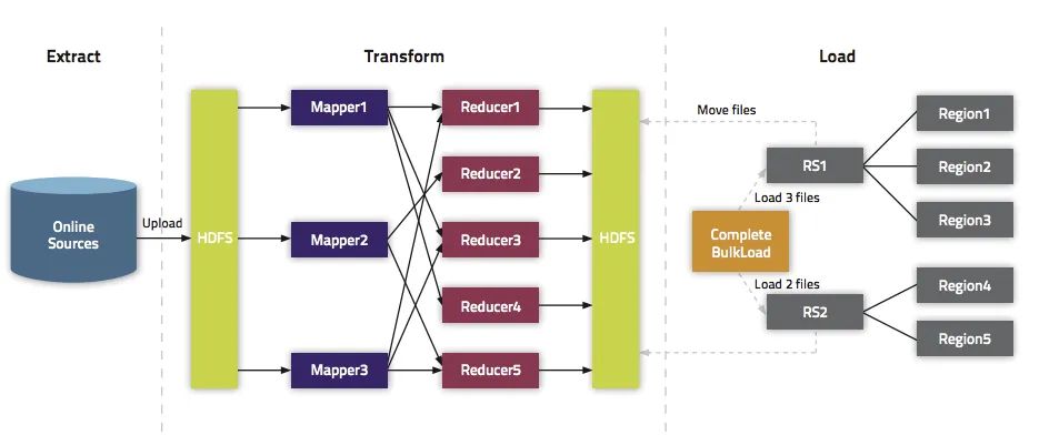 从数据源(通常是文本文件或其他的数据库)提取数据并上传到HDFS。抽取数据到HDFS和HBase并没有关系,所以大家可以选用自己擅长的方式进行,本文就不介绍了。