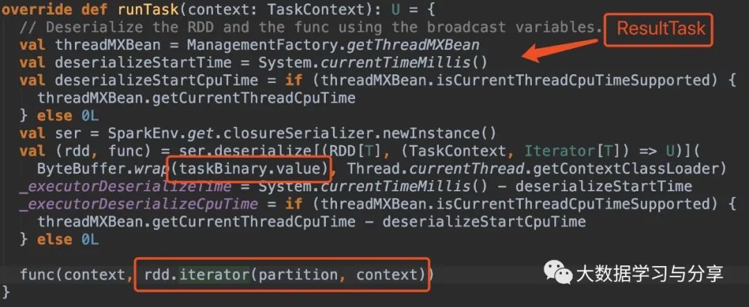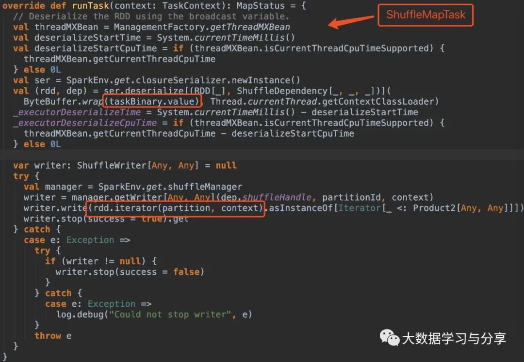 首先看ShuffleMapTask和ResultTask中runTask方法的源码: