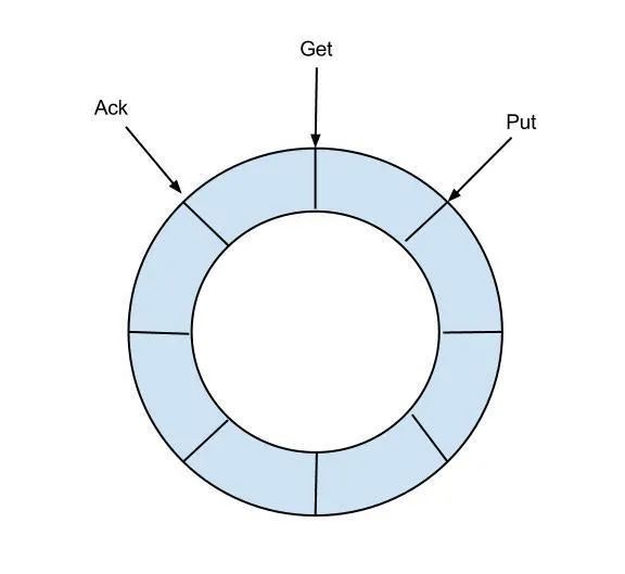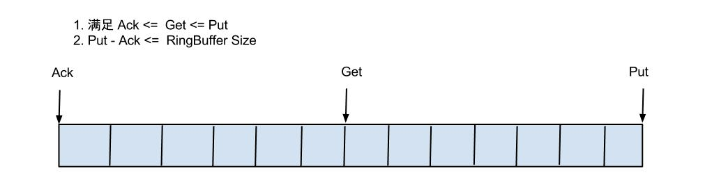 put/get/ack cursor用于递增,采用long型存储。三者之间的关系为put>=get>=ack buffer的get操作,通过取余或者&操作。(&操作:cusor & (size - 1) , size需要为2的指数,效率比较高)