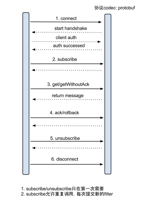 Connection获取上一次解析成功的log position(如果是第一次启动,则获取初始指定的位置或者是当前数据库的binlog log position) Connection建立连接,向MySQL master发送BINLOG_DUMP请求 MySQL开始推送binary Log接收到的binary Log 通过BinlogParser进行协议解析,补充一些特定信息。如补充字段名字、字段类型、主键信息、unsigned类型处理等 将解析后的数据传入到EventSink组件进行数据存储(这是一个阻塞操作,直到存储成功) 定时记录binary Log位置,以便重启后继续进行增量订阅