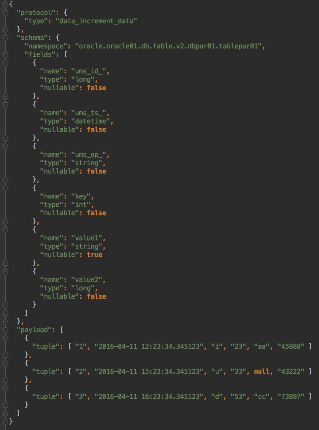 ✔ 将所有消息以统一的UMS消息格式发布在Kafka上,UMS是一种标准化的自带元数据信息的JSON格式,通过统一UMS实现逻辑消息与物理Kafka Topic解耦,使得同一Topic可以流转多个UMS消息表。