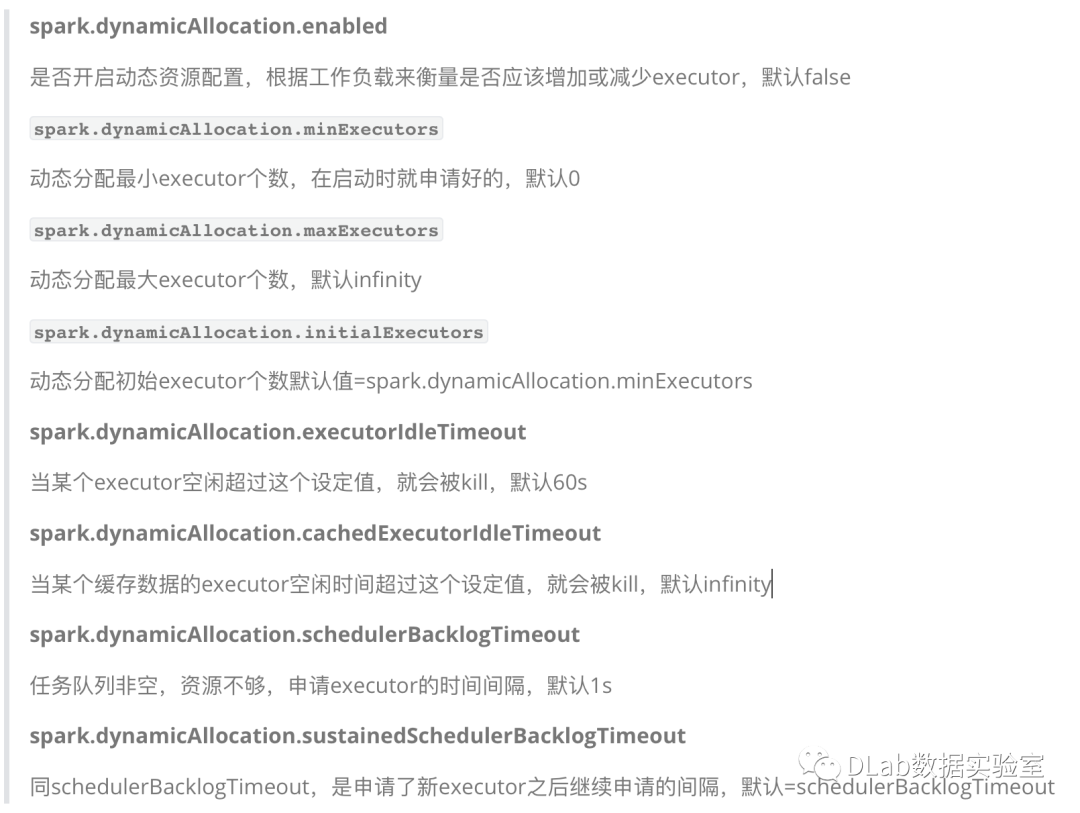 spark.dynamicAllocation.maxExecutors来限制Spark任务无上限的使用队列资源,这个参数相当于给Spark任务设置了一个资源利用上限,如果申请的总资源达到了这个标准就不再继续申请,哪怕队列还有资源剩余,这也大大减少了队列任务因为资源不够而积压的问题。
