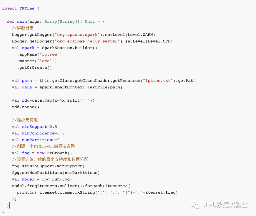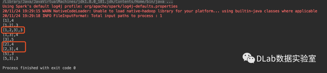 我们通过Spark的MLlib中提供的数据挖掘算法FP-Growth来验证一下我们的结果