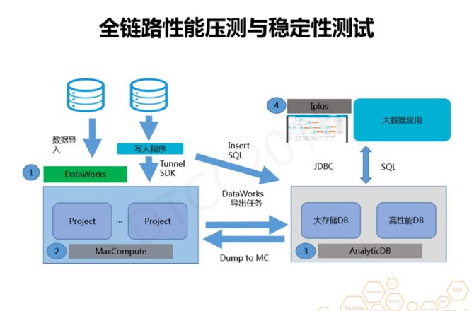 最后一块是比较重要的,就是全链路性能压测与稳定性测试。因为这个云平台上面有比较核心的两个组件,一个是 MaxCompute,一个是 AnalyticDB。我们单独去测它其实不会发现太多问题,很多时候是结合业务场景,在做全链路的时候发现一些瓶颈。包括我前面说到的裁减、删减,那么裁到什么比例是一个比较合理的比例,是需要经过一些验证的。我们根据客户的一些典型应用,比如离线计算的数据量、作业值、任务数,还有就是在 AnalyticDB 的数据存储等等,最终经过多轮的测试我们把刚才提到的优化点差不多都找到了一个最优的中间数值,最后实现了我们的原始目标。