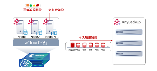 爱数AnyBackup Family 7 for aCloud备份恢复方案,凭借重复数据删除、并发备份、永久增量备份、远程复制等诸多技术,可为aCloud提供更全面、更高效、更安全的数据保护。