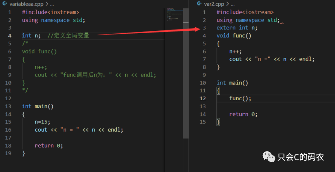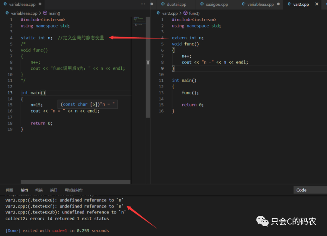 如果将静态变量改为全局变量的话,如下图: