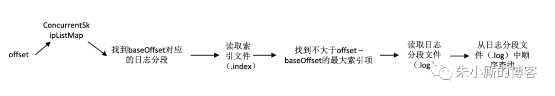 Kafka中通过offset查询消息内容的整个流程我们可以简化成下图: