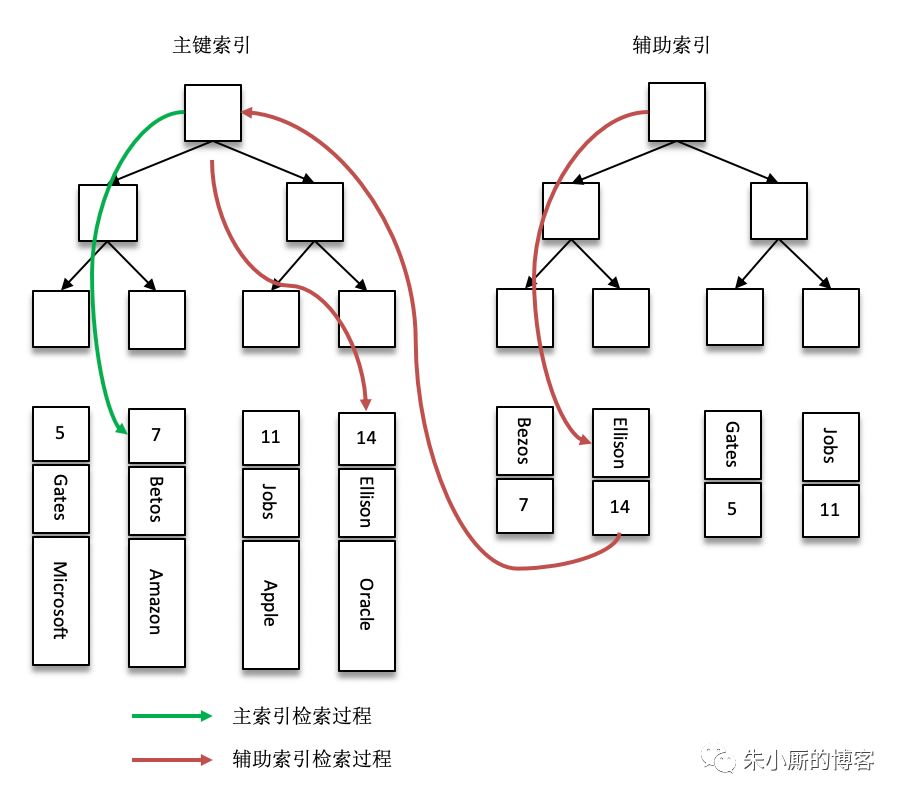 当数据库一条记录里包含多个字段时,一棵B+树就只能存储主键,如果检索的是非主键字段,则主键索引失去作用,又变成顺序查找了。这时应该在第二个要检索的列上建立第二套索引。 这个索引由独立的B+树来组织。