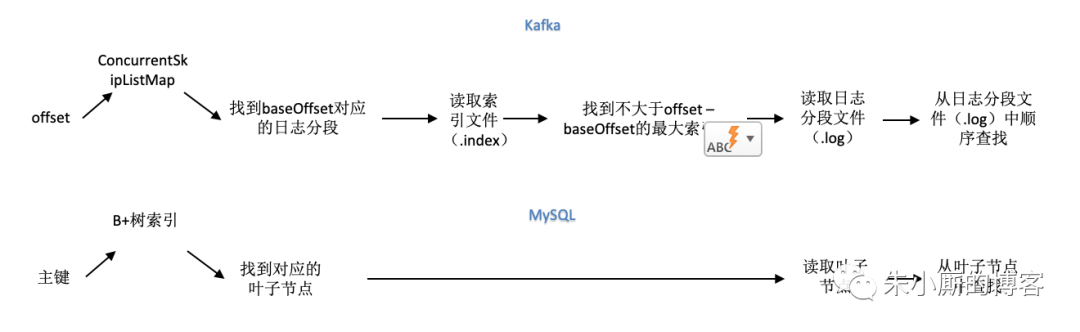 MySQL与Kafka索引机制的对比。