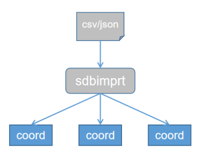 下面说明使用 sdbimprt 工具时如何提升导入性能:导入数据时,尽量指定多个 coord 节点的地址,用“,”分隔多个地址,sdbimprt 工具会把数据随机发到不同机器上的 coord,起到负载均衡的作用(如图1)。