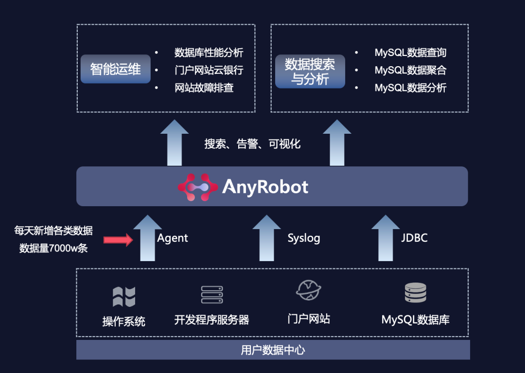 自2016年起,AnyRobot采用云原生架构,为海量数据运维场景提供弹性伸缩服务,确保系统可用性;借助Elasticsearch分布式系统、倒排索引等,实现海量数据的秒级搜索,解决复杂场景下的运维搜索效率问题。AnyRobot将Elasticsearch的搜索引擎能力引入,围绕运维场景,优化升级用户搜索体验。