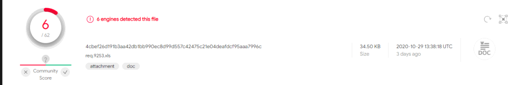 这次的样本使用旧的加密方式对cfb格式(xls)样本进行加密,这种方式虽然更为隐蔽但是只能对workbook流内的数据进行局部加密,对于宏以及ole对象的数据是无法加密的。因此只有攻击代码以纯文本的方式保存在工作表中,才能完成对攻击代码的隐藏。适用面比较窄,仅能在dde及excel 4.0宏的样本中使用。相关样本