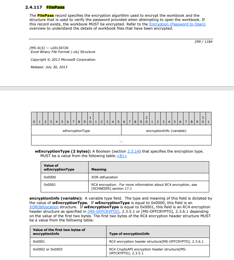 相关格式如下(MS-XLS 2.4.117 FilePass):