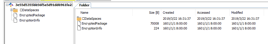 早期的加密文档通常使用默认的加密方式(ECMA-376)对ooxml格式(xlsx,xlsm等)样本进行加密,此时会对样本整体加密后存放在EncryptedPackage流内,特征相对明显并且便于解密。